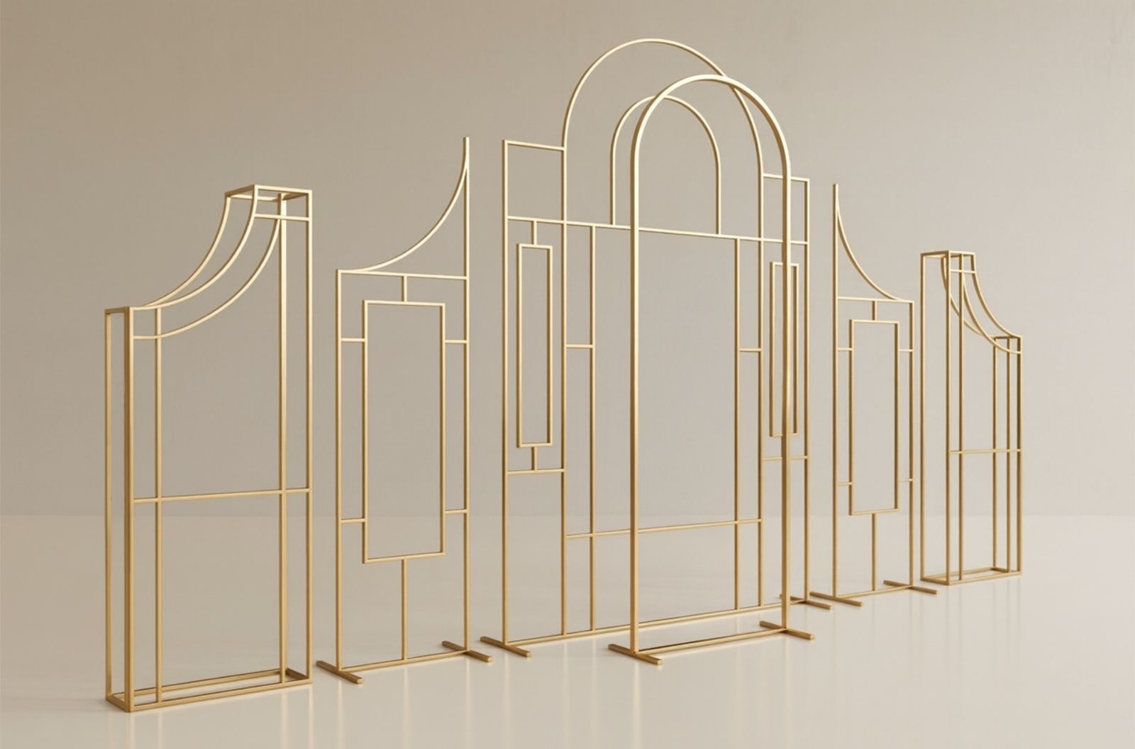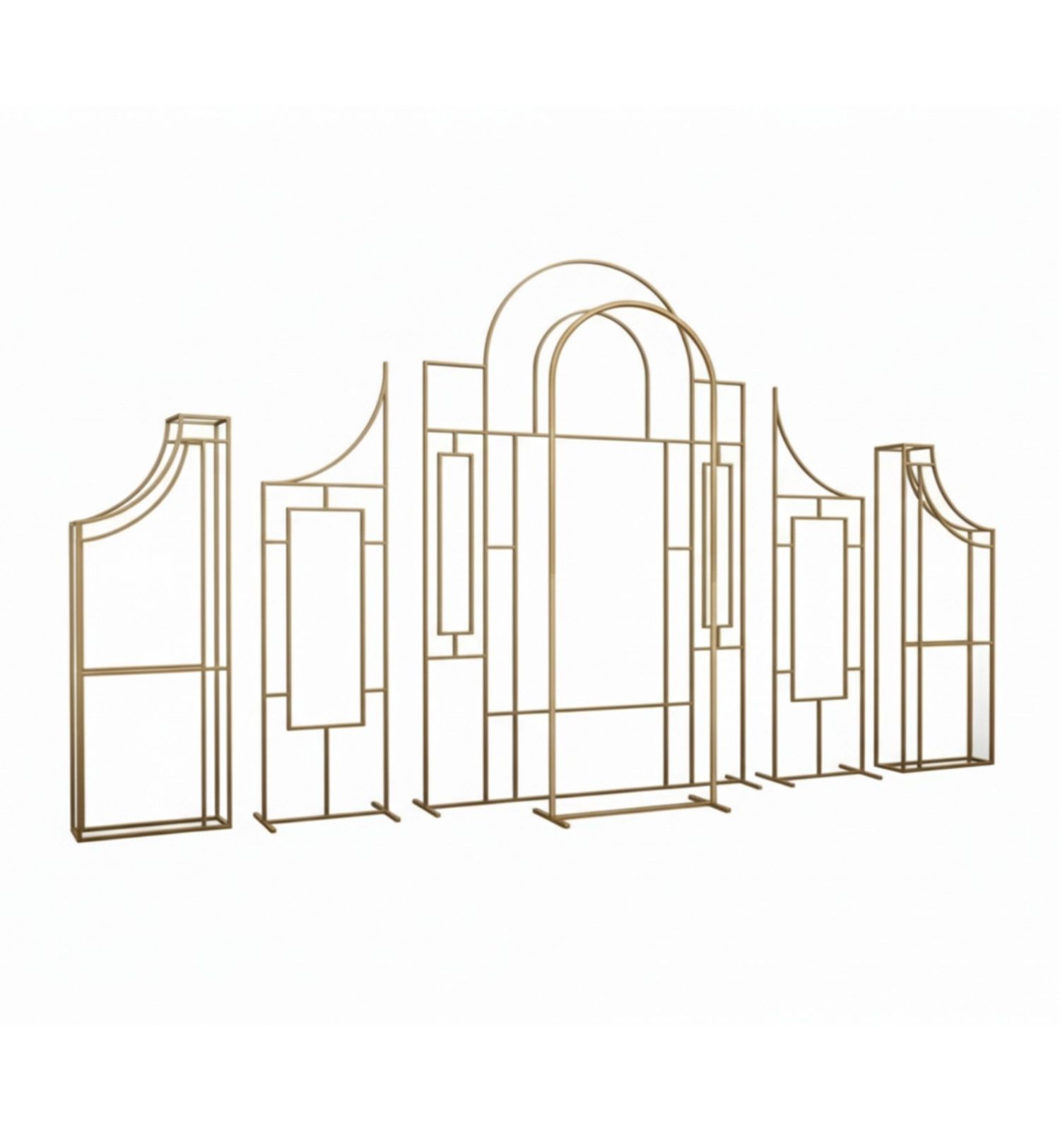 Материал - металл. Цвет - золото. Цена аренды указана за весь комплект. Также доступна аренда по частям. В цену аренды не входит стоимость доставки и установки. Цена доставки и установки рассчитывается отдельно менеджером.